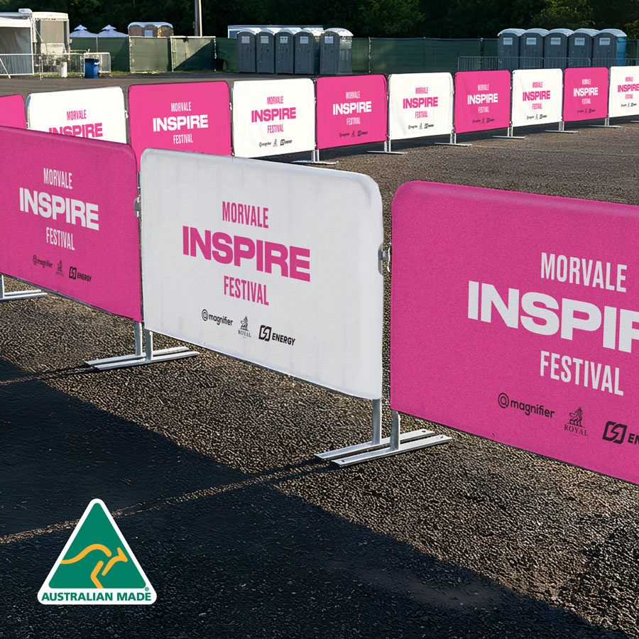 Our Interlocking Crowd Control Barrier Covers are an eye-catching way to transform standard metal barriers into bold promotional, directional or event-branded displays! Designed to fit the standard interlocking frames widely used across events, venues and public spaces, these covers allow you to instantly upgrade your crowd management setup with seamless, full-colour graphics.
