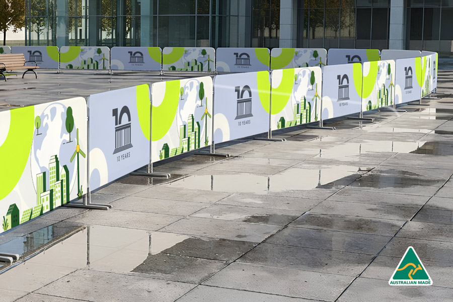 10 x 2150mm W x 990mm H Interlocking Crowd Control Barrier Covers with Single Sided Print