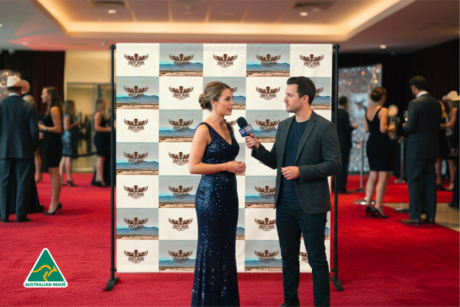 Our Adjustable Media Walls provide a great low cost backdrop for press conferences, interviews, trade shows and exhibitions.
