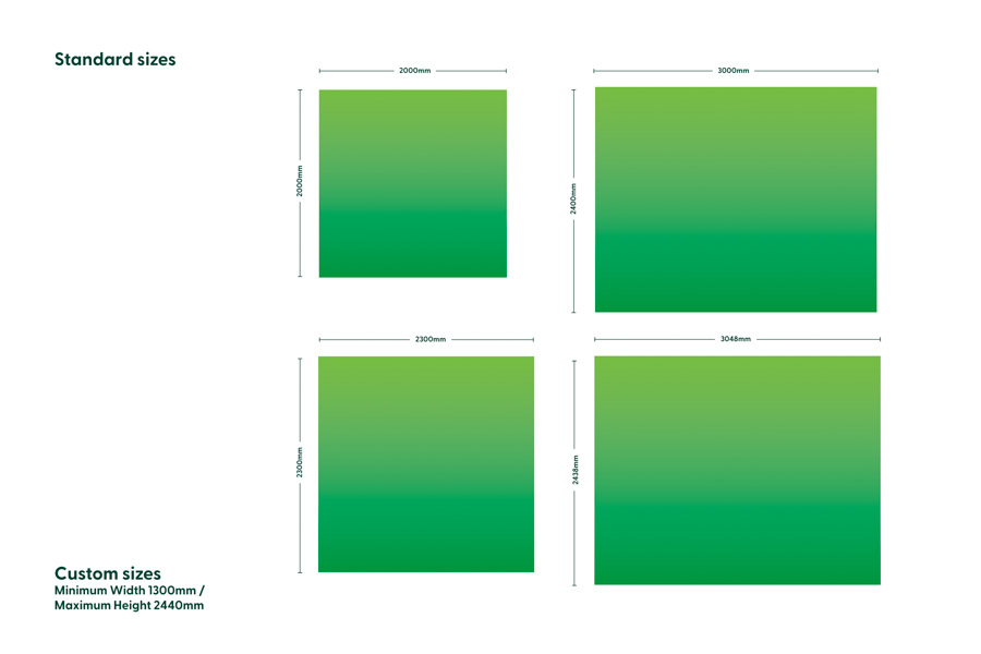 The Adjustable Media Walls have multiple twist lock adjustable telescopic poles which can vary the height and width - so you can choose a custom size to suit your application.