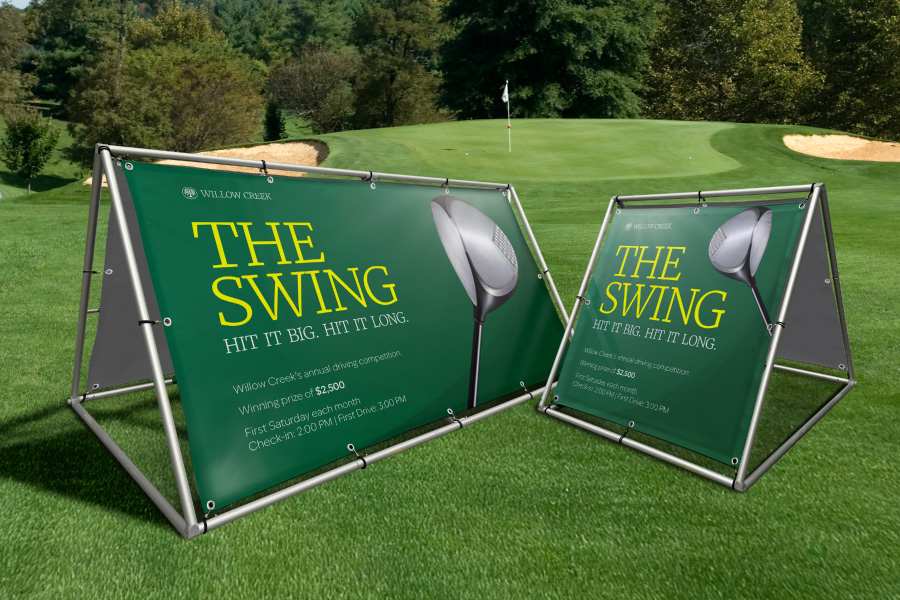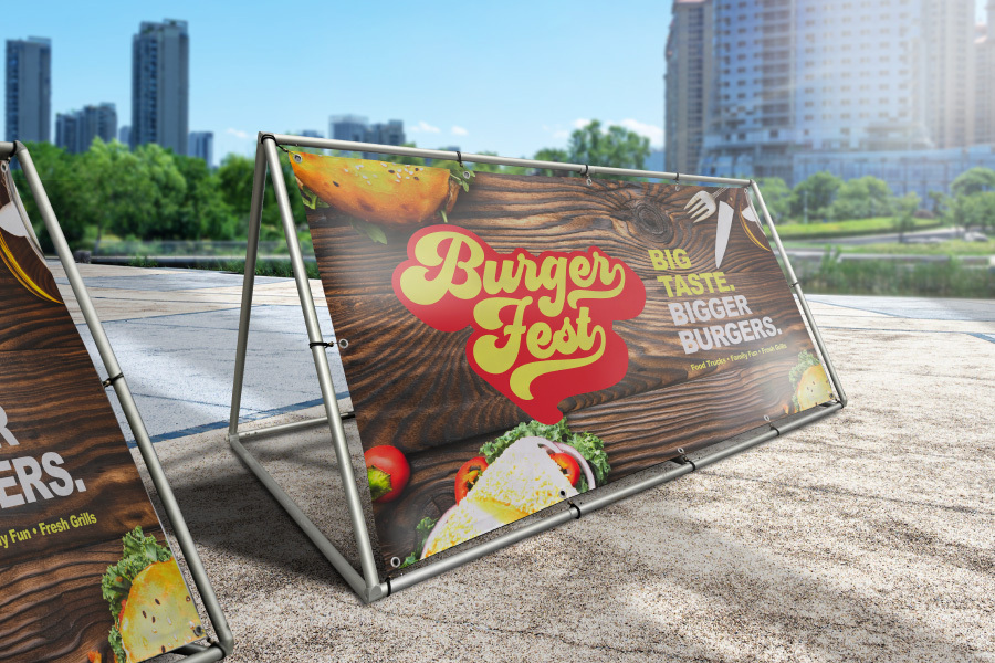 The printed Banner attaches to the frame with bungee cords that are placed around the frame and hooked into our clear eyelets. This keeps the print taut and ensures there are no wrinkles in your designs.