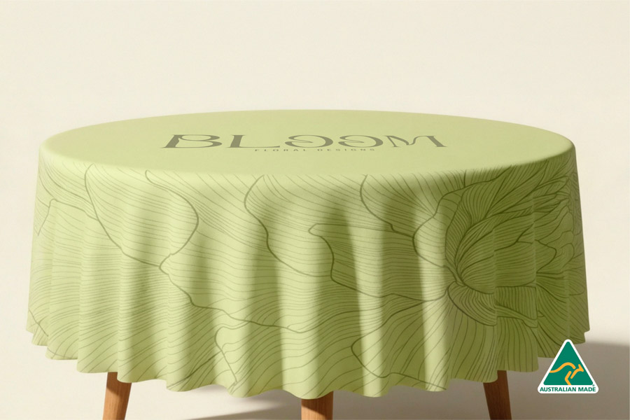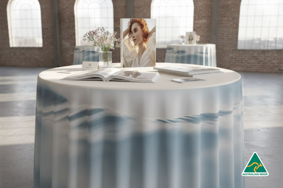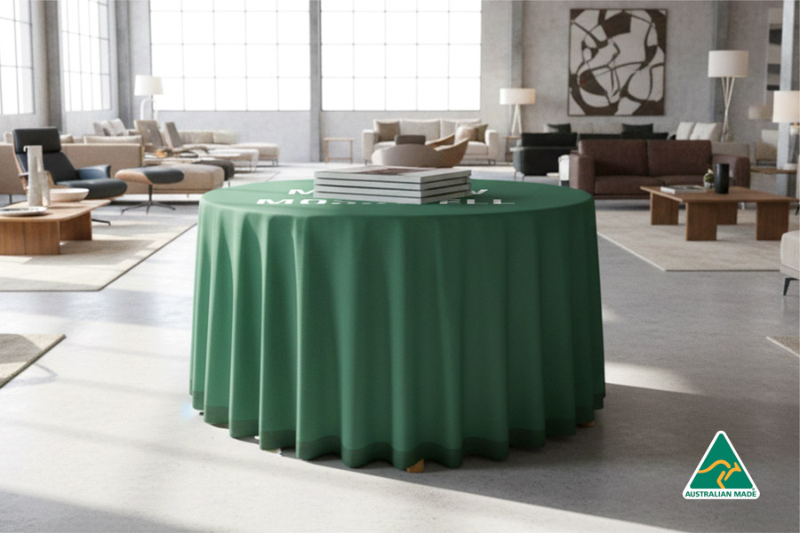 Our Round Table Throws provide high impact, low cost branding for your events or displays. They are custom printed in high resolution, full colour and are suitable for use on most sized tables with either a full or half drop. Our Round Table Throws are a great way to turn a basic table into a professional advertising tool and promote your business to potential customers!
